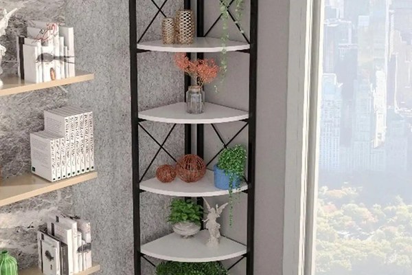 Etajera de colt cu structura metal, Homs,Pal melaminat+metal160x45x29 cm, alb/negru