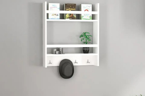 Etajera functionala cu agatatori Harley Homs, 53.6 x 60 x 14.5 cm, alb