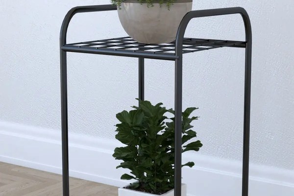 Etajera metal pentru flori 2 rafturi Decor Homs 33 x 60 x 31 cm, negru