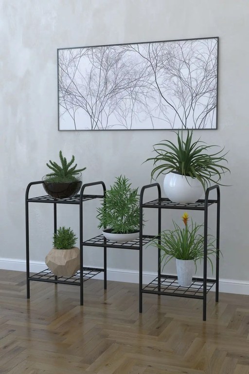 Etajera metal pentru flori 5 rafturi Decor Homs 95 x 60 x 31 cm, negru