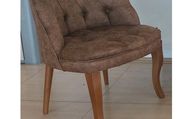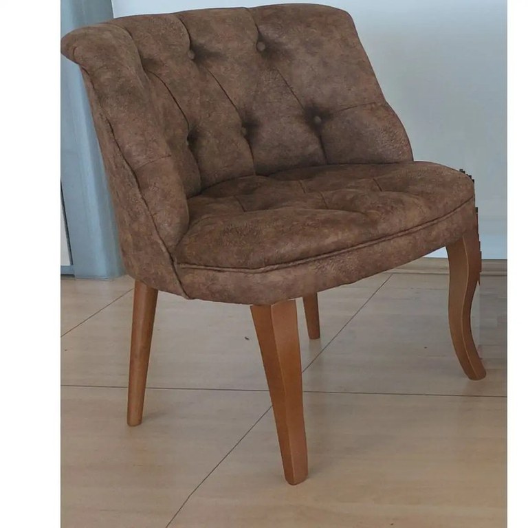 Fotoliu maro Dimensiuni: L 65 cm, adancime 60 cm, inaltime fara picioare 45 cm, inaltime pana la sezut (picioarele: 30 cm) Fotoliu cu picioare de lemn masiv