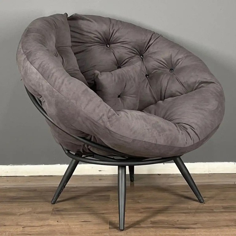 Fotoliu tapitat cu stofa si picioare metalice,rotund,homs Dimensiuni: L 100 cm, adancime 70 cm, inaltime 90 cm, Fotoliu cu picioare de metal