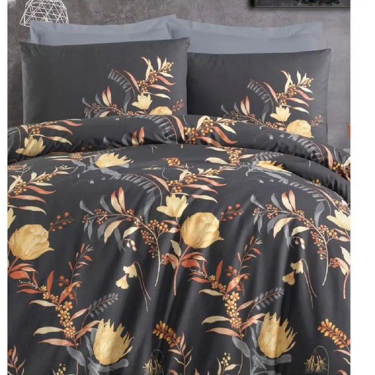 Îmbracă patul în eleganță, cu lenjeria de pat Homs pentru o persoană, seria H280Descoperă setul nostru superb de lenjerie de pat din bumbac satinat, negru, cu modele florale în nuanțe de portocaliu și galben - un accesoriu încântător pentru camera ta! Setul de lenjerie îmbină calitatea superioară, designul elegant și dinamismul cromatic. Hai să explorăm mai în detaliu acest set:Compoziție:Bumbac satinat (85% bumbac + 15% microfibră), 57 de fire pe cm2Pachetul conține:Un cearșaf pilotă generos de 160x220 cm, ca să te asiguri de un somn bun.Un cearșaf de pat spațios de 160x240 cm, ca să-ți îmbraci patul cu stil.Față de pernă de 50x70 cm, ca să completeze aspectul armonios.Dimensiunile pot varia cu ±5cm.Întreținere ușoară:nu se folosesc inălbitori chimicise spală la 30°C automatse calcă la max. 130°CAvantaje:Calitate superioară: Lenjeria de pat Homs este realizată cu atenție la detalii și din materiale de cea mai bună calitate.Design elegant: Acest model de lenjerie neagră, cu model floral vibrant în portocaliu și galben, adaugă o notă de dinamism cromatic în cameră. Confort: Materialul satinat e foarte moale și îți asigură un somn liniștit noapte de noapte.Cu setul de lenjerie de pat Homs, dormitorul tău devine un adevărat loc de relaxare, plin de confort și eleganță. Descoperă acum întreaga colecție de lenjerii de pat și alege-o pe cea care se potrivește cel mai bine nevoilor tale de design!Iar ca să ai pachetul complet în termeni de confort, comandă și o saltea ortopedică pentru patul tău! De asemenea, îți poți decora dormitorul cu o serie de piese de mobilier pentru dormitor, precum: comode, noptiere, mese pentru machiaj, șifoniere și dulapuri, decorațiuni luminoase.Alege calitatea Homs!