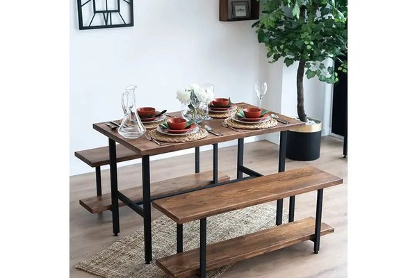Masa+2 bancheta metal,lemn, Homs, 120 x 70 x 75 cm,seria A620, 30322