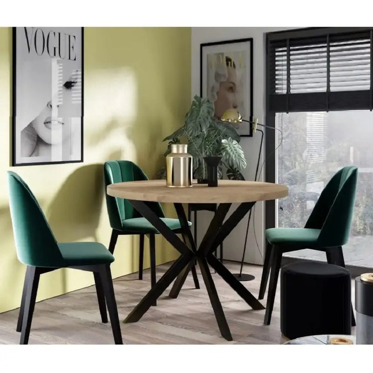 Oferă-i casei tale o notă contemporană și chic, cu masa de bucătărie texturată Homs!Bucătăria ta merită să strălucească, iar masa din MDF texturat Homs este alegerea perfectă pentru a completa decorul casei tale. Cu o combinație de design modern și detalii texturate, această masă adaugă un aer elegant și rafinat spațiului tău. Picioarele metalice ale mesei oferă stabilitate și durabilitate, completând perfect designul și aducând un echilibru subtil între robustețe și eleganță.Dimensiuni:Diametru (R): 70 cmÎnălțime (H): 75 cmDetalii tehnice:Blat: MDF TexturatPicioare: MetalCaracteristici avantajoase:Construcție durabilă: Realizată din MDF texturat de înaltă calitate, masa rezistă în timp la uzură.Dimensiuni compacte: Cu un diametru de 70 cm și o înălțime de 75 cm, se potrivește perfect în orice colț al casei tale, făcând-o ideală pentru spații restrânse.Combinație perfectă de MDF și metal: Blatul din MDF oferă o suprafață elegantă și ușor de întreținut, iar picioarele metalice adaugă stabilitate și un aspect modern.Se livreaza neasamblat, insotit de schita si accesorii montaj. Asamblarea se face de catre beneficiar, urmarind desenele de pe schita.Blatul nu este pregaurit.Dupa asamblarea scheletului metalic, acesta se infileteaza impreuna cu blatul cu o surubelnita manuala sau electrica. Curatarea se face cu o carpa alba moale si solutii de curatare neabrazive. Produsul comercializat este o masa, nu se vinde cu scaune, nu sunt incluse scauneCompletează aspectul și funcționalitatea livingului tău cu ajutorul măsuței de cafea Homs! Iar pentru că aveam o întreagă colecție de măsuțe de cafea, ar fi păcat să o ratezi! Explorează gama și alege măsuța preferată de tine!Iar dacă vrei spații mai generoase pentru așezarea obiectelor decorative, aruncă o privire asupra rafturilor de perete și asupra colecției de etajere și bliblioteci Homs.