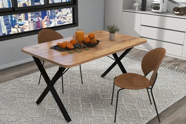 Masa bucatarie texturata, nuc-negru,120x70x75 cm,60124Blat rearealizat din pal de 18 mm cu margini dublate si picioare metal negruDimensiuni: L 120, l 70, h 75 cmAtentie! Produsul este o masa, nu contine scaune!