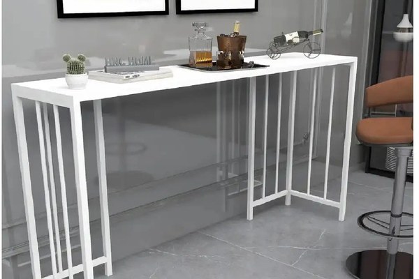 Caracteristici principale:Design rafinat: combinația între blatul alb și cadru metalic alb oferă un aspect modern și luxos.Construcție durabilă: blat din PAL melaminat, ușor de întreținut și rezistent la uzură.Cadru metalic rezistent cu profil de 30x20 mm, ideal pentru utilizare intensă în restaurante, cafenele sau acasă.Potrivită pentru mese tip bar, insule de bucătărie sau zone de servire rapide.Dimensiuni:Lungime: 150 cmLățime: 35 cmÎnălțime: 90 cmMateriale:Blat: PAL melaminatPicioare: Metal (profil 30x20 mm), finisaj auriuAceastă masă tip bar îmbină perfect estetica și utilitatea, oferind un spațiu optim pentru servire și socializare.