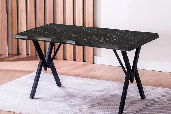 Masă Barton din MDF, negru cu efect marmorat – eleganță modernă pentru bucătărie sau livingTransformă-ți spațiul de dining sau living într-un loc sofisticat, cu un plus de personalitate, alegând masa Barton cu blat din MDF negru cu efect marmorat. Designul său minimalist-industrial îmbină robustețea structurii metalice cu rafinamentul modelului marmorat, creând un contrast de efect care se potrivește perfect în decoruri moderne, elegante sau contemporane.Caracteristici și avantaje ale mesei Barton cu efect marmoratBlat din MDF cu efect marmorat – Finisajul negru cu model marmorat adaugă un aspect de lux, elegant, fiind totodată și ușor de întreținut.Grosime dublă pentru rezistență sporită – Blatul din MDF (36 mm: 18+18 mm laminat) asigură stabilitate și durabilitate în timp.Structură metalică robustă – Picioarele metalice cu finisaj negru mat conferă mesei un look industrial modern și un suport ferm.Design minimalist și versatil – Liniile curate și modelul marmorat fac din această masă o piesă statement în orice bucătărie, living open space sau zonă de dining.Spațiu generos pentru 4–6 persoane – Dimensiunile de 140x80x72 cm oferă suficient loc pentru mesele în familie sau întâlnirile cu prietenii.Recomandări de utilizare pentru masa Barton neagră, cu efect marmoratÎn zona de dining – Potrivește masa cu scaune în culori neutre, tapițate sau cu detalii metalice, pentru un look rafinat și coerent. Efectul marmorat aduce o notă premium, ușor de completat cu decorațiuni aurii, gri sau tonuri de alb. În biroul de acasă – Blatul spațios poate fi folosit și ca birou, pentru un spațiu de lucru cu personalitate.Descoperă pe Homs.ro colecția noastră de mese de bucătărie, scaune de bucătărie precum și accesorii de gătit pentru locuința ta! Explorează ambele game de piese de mobilier pentru living și bucătărie!