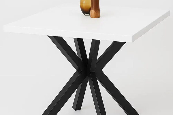 Masa de bucatarie din MDF patrat, alb,texturata, Homs 80x80X75 cm