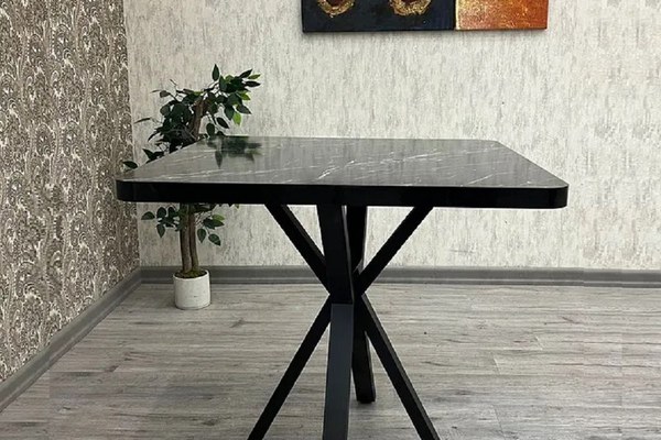 Masa de bucatarie din MDF patrat, marmurat negru,texturata, Homs 80x80X75 cm