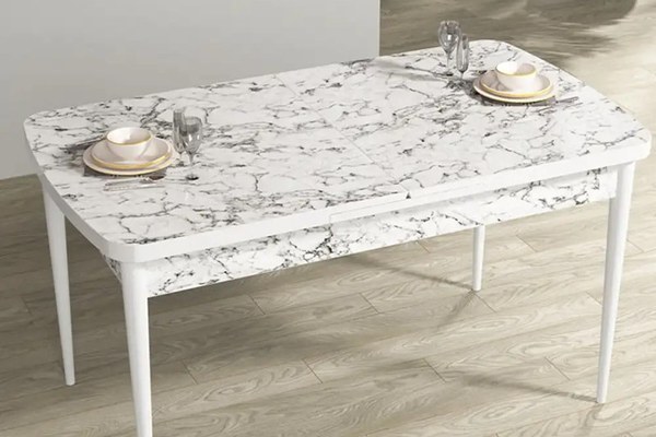 Masa de bucatarie extensibila dining, alb marmurat, 170 x 80 cm