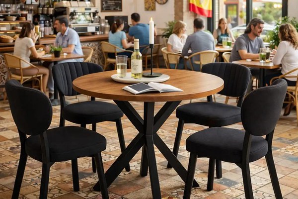 Masă de bucătărie MDF (36 mm) rotundă Homs, nuc-negru Adaugă un punct central elegant și primitor în bucătăria sau zona de dining cu masa rotundă Homs, cu blat din MDF în nuanță nuc și finisaj negru. Forma rotundă încurajează conversația și creează o atmosferă caldă, ideală pentru cinele în familie sau întâlnirile cu prietenii. Picioarele metalice negre, cu structură centrală tip buchet, asigură stabilitate și adaugă un impact vizual modern, în timp ce contrastul rafinat dintre blat și structură completează designul sofisticat al piesei. Este o masă ideală și pentru spațiile HoReCa, deci dacă ai o cafenea sau un restaurant, dă-i un refresh cu această piesă irezistibilă! Caracteristici și avantajeBlat rotund din MDF, cu finisaj negru,nucFormă rotundă care încurajează conversația și creează o atmosferă primitoare la masă.Picioare metalice negre robuste, cu structură centrală tip buchet, pentru stabilitate și impact vizual.Contrast cromatic rafinat între blat și picioare.Dimensiune compactă, ideală și pentru spații medii sau mici.Suprafață rezistentă, ușor de întreținut.DimensiuniLungime: 80 cmLățime: 80 cmÎnălțime: 75 cmDiametru blat: 80 cmMaterialeBlat: MDF texturat, finisaj nucStructură: metal, finisaj negruDescoperă și alte mese de bucătărie, scaune de bucătărie, tabureți și alte piese de mobilă pentru bucătărie, creând astfel un spațiu de dining armonios, unde eleganța și funcționalitatea se întâlnesc.
