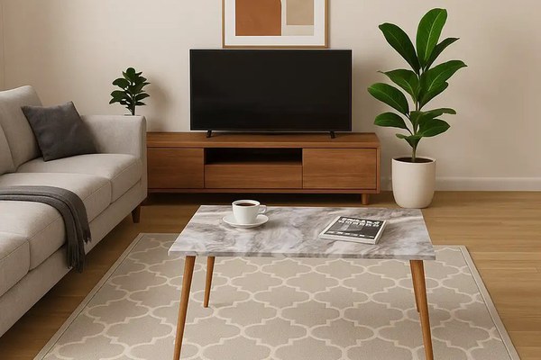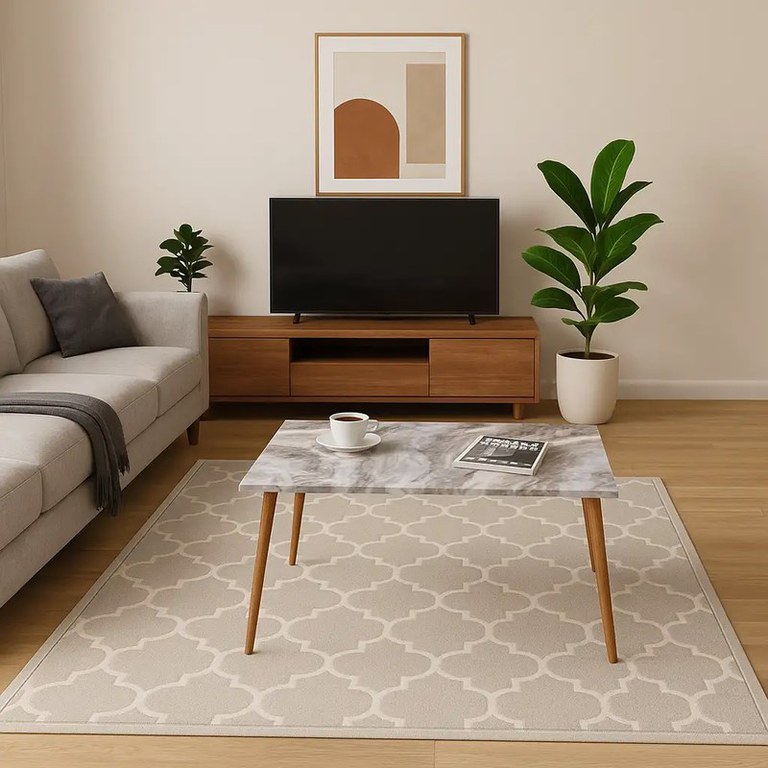Masuta de cafea pentru living cu design modern simplu, fiind usor de asortat intr-un decor contemporan. Este o masuta economica cu dimensiuni potrivite pentru un living mediu sau de dimensiuni mai mici, astefel incat sa nu aglomereze spatiul de locuit.Realizata din pal de 18 mm cu aspect marmorat in nuante de gri,maro, alb si picioare din lemn culoare nuc.Se livreaza neasamblat ,insotit de schita si accesorii montaj.Curatarea se face cu o carpa alba moale si solutii de curatare neabrazive. Dimensiuni: L 72, 45, h 42 cm