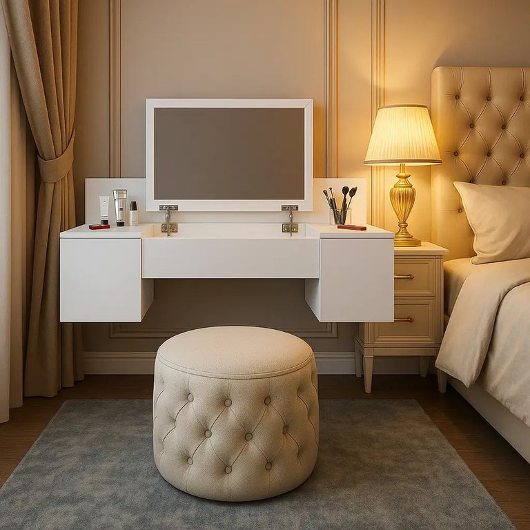 Masa de machiaj suspendata Vanity Homs , 100 x 33 x 39.1 cm, alb