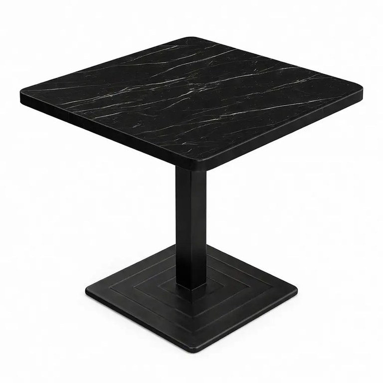 Masa din MDF,patrat texturata, Homs ,negru marmurat-negru,80 x 80 X 75 cm,A0111