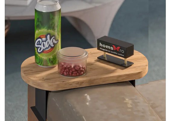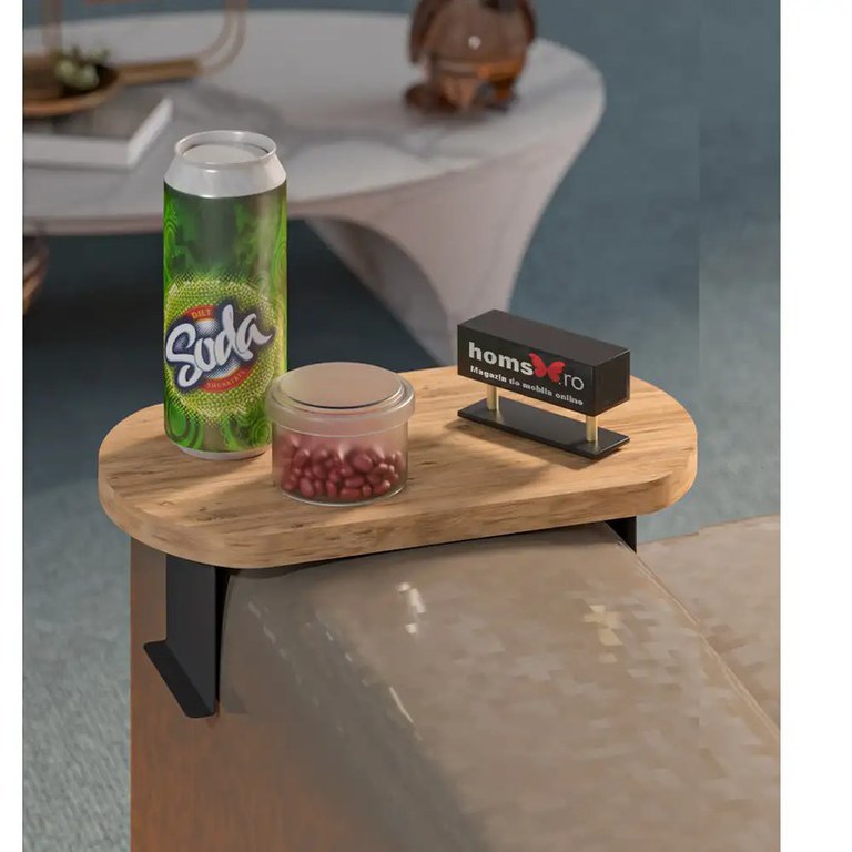 Măsuță laterală Verla Homs, nuc și negru – Practică și versatilă, perfectă pentru orice spațiuMăsuța de cafea laterală Verla Homs este soluția ideală pentru momentele tale de relaxare. Blatul în nuanță caldă de nuc și structura metalică neagră creează un contrast elegant, integrându-se perfect în orice tip de amenajare. Compactă și ușor de montat, această măsuță se atașează direct de brațul canapelei, oferindu-ți un suport practic pentru cafea, cartea preferată sau telecomandă.Caracteristici și avantaje ale măsuței laterale Verla HomsDesign compact și versatil – Dimensiunile reduse o fac ideală pentru spațiile mici, oferind un suport discret și elegant, perfect integrat în decorul livingului.Sistem practic de prindere – Se fixează ușor pe brațul canapelei sau al fotoliului, putând fi mutată cu ușurință dintr-un loc în altul, în funcție de nevoile tale. Materiale rezistente și ușor de întreținut – Blatul din PAL melaminat cu finisaj în nuanța de nuc este durabil și plăcut la atingere, iar cadrul metalic negru asigură stabilitate și un aspect modern.Ideală pentru diverse utilizări – Fie că o folosești ca suport pentru ceașca de cafea, laptop, o carte sau telecomandă, măsuța Verla Homs îți va face viața mai ușoară, asigurându-ți tot confortul de care ai nevoie în cadrul momentelor de relaxare din living. Descoperă întreaga colecție de măsuțe de cafea Dacă îți place acest model, explorează întreaga noastră colecție de măsuțe de cafea, pentru un decor armonios și elegant. Descoperă și gama de mese și scaune pentru spațiul de dining, precum și rafturile de perete sau bibliotecile pentru zone elegante de depozitare în sufrageria ta. Vezi colecția noastră de mobilier living și alege modelele care îți vor defini locuința! Dimensiuni: 35 x 20 x 15 cmMateriale: PAL melaminat, MetalPachet livrare: 35.5 x 35.5 x 5 cm / 1.5 kg