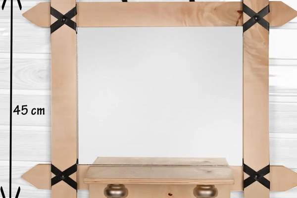 Oglinda pentru hol sau camera cu 2 agatatori tip cuier pentru chei. Rama este realizata din nlemn stratificat culoarea natur, iar pe colturi are legaturi din piele ecologica. Un articol simplu, de efect ce este folositor .Dimensiuni:L 50 , l 45 cm
