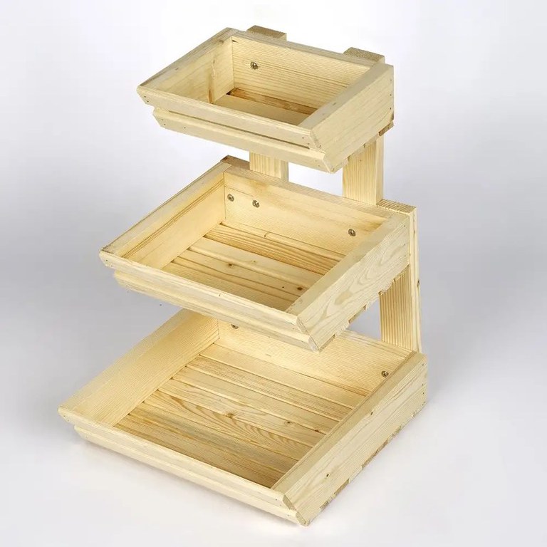 Organizator de bucătărie din lemn masiv – Ordine și eleganță în bucătăria ta!Adaugă un accesoriu practic și elegant în bucătăria ta! Descoperă organizatorul din lemn masiv cu 3 rafturi, perfect pentru a așeza fructe, legume, dulciuri sau diverse condimente din spațiul tău de gătit.Caracteristici și avantaje100% lemn masiv: Fabricat din lemn masiv de cea mai bună calitate, acest organizator este extrem de durabil și rezistent. Lemnul masiv oferă un suport robust și o rezistență de lungă durată, făcându-l ideal pentru bucătăria ta.Culoare stejar: Culoarea naturală de stejar adaugă un aspect cald, rustic în bucătăria ta.Design compact: Construit cu un design practic și compact, cu 3 rafturi tip coșuleț, acest organizator este ușor de integrat în orice configurație de bucătărie. Poate fi plasat cu ușurință pe blatul de bucătărie sau pe masa din living, încărcat cu fructe, dulciuri sau prăjituri.DimensiuniLungime: 30 cmLățime: 26 cmÎnălțime: 45 cmColet 1: 35x35x12 cm/ 3 kgDescoperă întreaga colecție de mobila bucatarie și explorează colecțiile noastre de: mese bucătărie, scaune bucătărie și accesorii pentru gătit. Creează un decor perfect în bucătăria ta, cu Homs!