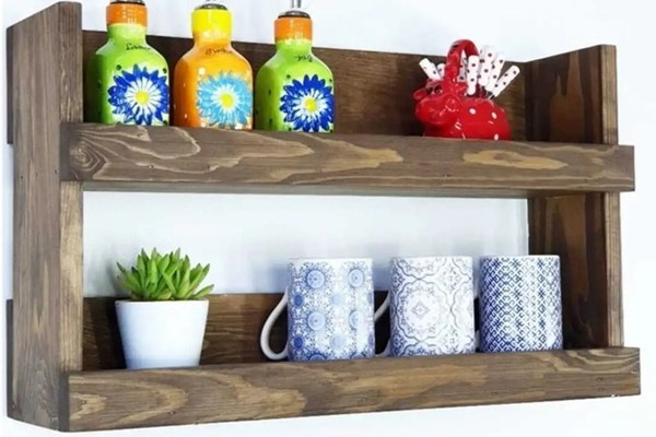 Raft de perete pentru bucatarie, seria wood Homs, 50x14x30 cm, lemn naturDimensiuni:L 50, l 14, h 30 cm