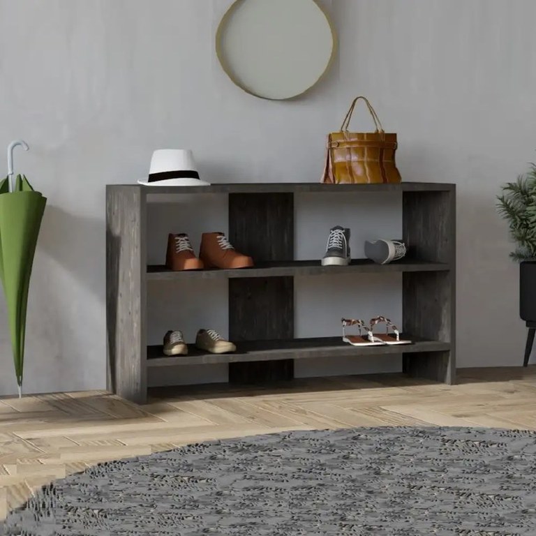 Pantofar din pal, Anyka Un pantofar cu linii simple, insa foarte util pe holuri inguste. Culoarea antracit, se integreaza usor in orice decor. Produsul este realizat din pal de 18 mm. Se livreaza neasamblat , ambalat intr-un colet fiind insotit de schita si accesorii pentru montaj. Montajul se realizeaza de catre client cu unelte simple, manuale. Curatarea se face cu o carpa alba si produse de curatenie neabrazive. Diemnsiuni: L 93,6, l 31 h 56 cm 100% MELAMINE COATED PARTICLE BOARDThickness: 18 mmWidth: 93 cm Height: 56 cm Depth: 31 cmCan be Fixed to the WallAdditional StorageNumerous Shelves Number of Packages: 135 x 116 x 10 cm / 14 kg (1 Piece)
