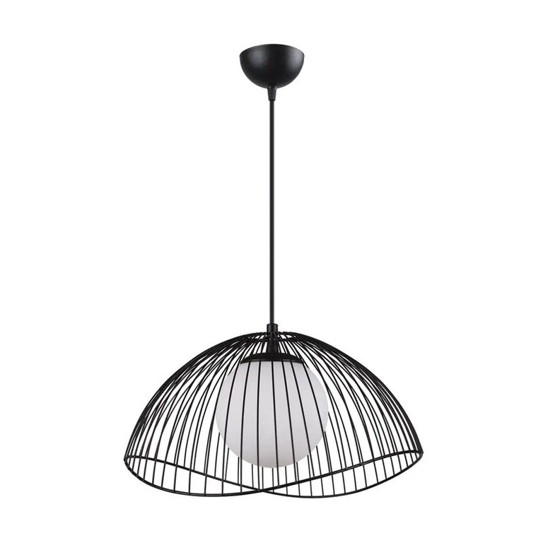 Lustra tip pendul realizata din corp metal culoare neagra cu un glob din sticla culoare alba.Becul nu este inclus.Se livreaza impreuna cu instructiuni de montaj si conexiuni.Dimentiune: 40 x 21 cm inaltime: 120 cmGlass Cap Diametru 15 cm Lungime cablu : 100 cmDulie Tip: E 27 Max 100 WImaginile sunt cu titlu de prezentare si pot contine accesorii neincluse in pachet. Unele specificatii de culoare pot suferi modificari de la producator sau pot contine erori de continut.Produsul se livreaza in ambalajul original al producatorului.