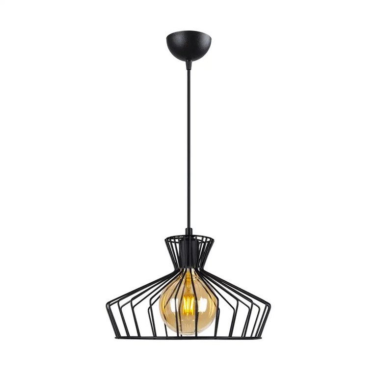 Lustra tip pendul realizata din corp metal culoare neagra cu un glob din sticla culoare alba.Becul nu este inclus.Se livreaza impreuna cu instructiuni de montaj si conexiuni.Dimentiune: 34 x 21 cmInaltime: 120 cmLungime cablu : 100 cmDulie Tip: E 27 Max 100 WImaginile sunt cu titlu de prezentare si pot contine accesorii neincluse in pachet. Unele specificatii de culoare pot suferi modificari de la producator sau pot contine erori de continut.Produsul se livreaza in ambalajul original al producatorului.