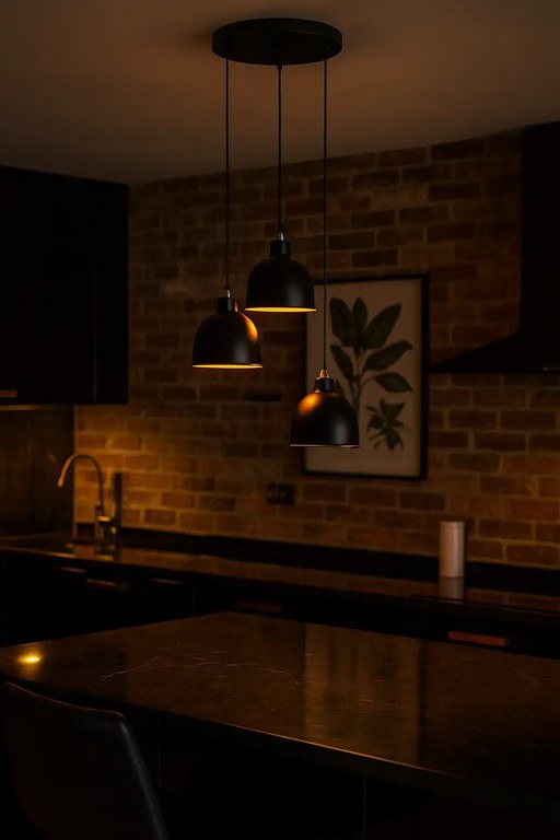 Lustra tip pendul realizata din corp metal culoare neagra-auriu cu 3 glob din sticla culoare alba.Becul nu este inclus.Se livreaza impreuna cu instructiuni de montaj si conexiuni. Diametru : 51 cmInaltime: 110 cmCap diametru : 21 cmCap inaltime : 19 cmInaltime raglabilDulie Tip:3x E 27 Max 100 WImaginile sunt cu titlu de prezentare si pot contine accesorii neincluse in pachet. Unele specificatii de culoare pot suferi modificari de la producator sau pot contine erori de continut.Produsul se livreaza in ambalajul original al producatorului.