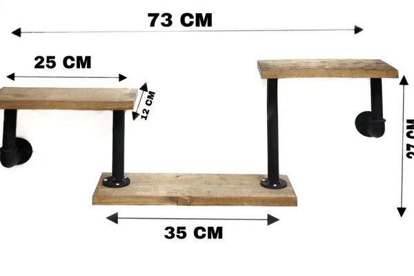 Raft cu 3 polite stil industrial din lemn-metal Homs 73 X 12 X 27 cm