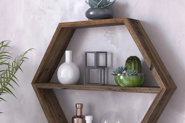 Indiferent dacă pui obiecte decorative la expus sau creezi un spațiu pentru a scoate în evidență fotografiile încadrate, raftul de perete din lemn Hexagonal Homs va deveni punctul de atracție principal din cameră. Dispunând de materiale fine, acesta oferă un spațiu decorativ și funcțional pentru biroul de acasă, camera de zi, sau bucătărie.Dimensiuni:Înălțime: 45 cm. Lungime: 27 cm