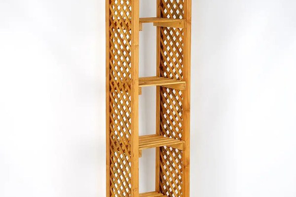 Raft organizator cu 4 politie Dimensiuni:Lungime: 34 cmLatime: 28 cmInaltime: 140 cmÎntre rafturi :30 cmMaterial:100% Lemn masivCuloare:Nuc deschis (spre stejar)Pachet:Colet 1 : 45*150*15 / 10 kg
