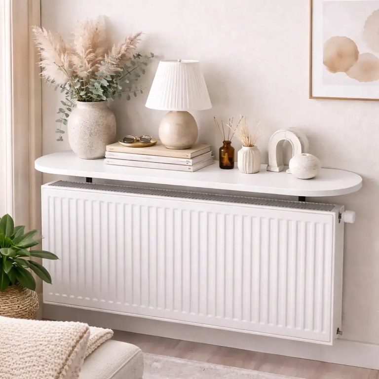 Raft perete suport calorifer alb Homs – organizează și optimizează spațiulMaximizează spațiul și eficiența în locuința ta cu raftul pentru calorifer Homs, o soluție practică și estetică pentru camerele locuinței tale. Designul său alb delicat, cu margini ovale pe toate laturile, combină aspectul modern și rafinat cu siguranța (mai ales dacă ai copii). Raftul direcționează căldura în cameră și oferă un spațiu de depozitare compact pentru decorațiuni, cărți sau diverse alte obiecte mici. Instalarea este rapidă și simplă, potrivită pentru majoritatea radiatoarelor standard.Caracteristici și avantajeDesign alb minimalist, ușor de integrat în orice încăpere.Tăieturi ovale pe toate laturile, care previn accidentarea copiilor și adaugă un element estetic.Optimizează distribuția căldurii în cameră, menținând confortul termic.Spațiu de depozitare suplimentar pentru obiecte decorative sau mici accesorii.Instalare rapidă și simplă, cu șuruburile furnizate.Potrivit pentru distanțe între radiatoare de 3-6 cm, ideal pentru majoritatea caloriferelor.Material ușor, dar rezistent, gândit pentru utilizare îndelungată.DimensiuniLungime: 120 cmLățime: 18 cmMaterialePAL cu finisaj albMetalEste o idee bună cumpărarea unui raft pentru calorifer?Rafturile pentru calorifer sunt perfecte pentru camere care au adesea curenți de aer, unde se preferă reținerea căldurii. Raftul direcționează căldura de la calorifer în cameră, servind totodată ca element decorativ pentru orice cameră din casa ta. Cât de lung ar trebui să fie un raft pentru calorifer?Ar trebui să alegi dimensiunea cea mai apropiată de lungimea caloriferului tău De exemplu, dacă radiatorul măsoară 1000 mm, un raft de 1200 mm ar fi o alegere perfectă.Descoperă și alte rafturi de perete și accesorii pentru organizarea locuinței tale, pentru un spațiu ordonat și estetic. Vezi, de asemenea, și alte piese de mobilă living și decorează casa cu cele mai cool piese de mobilier: măsuțe de cafea, comode televizor, biblioteci și multe altele.