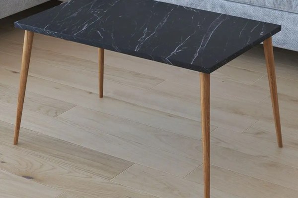 Masuta de cafea pentru living cu design modern simplu, fiind usor de asortat intr-un decor contemporan. Este o masuta economica cu dimensiuni potrivite pentru un living mediu sau de dimensiuni mai mici, astefel incat sa nu aglomereze spatiul de locuit.Realizata din pal de 18 mm culoare negru marmorat cu picioare lemn culoare nuc.Se livreaza neasamblat ,insotit de schita si accesorii montaj.Curatarea se face cu o carpa alba moale si solutii de curatare neabrazive. Dimensiuni: L 72, 45, h 42 cm