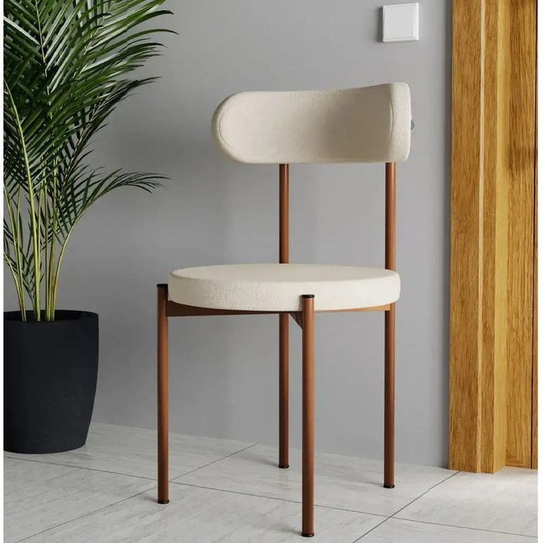 Scaun Onita profil metalic maro și tapițerie bej – confort și design modernAdaugă un plus de căldură și rafinament spațiului tău cu scaunele Onita, cu un cadru metalic robust, finisat în nuanță maro și tapițerie textilă fină, în nuanța de bej. Designul modern, cu spătar semirotund și șezut rotund, asigură confort și ergonomie, fiind alegerea ideală pentru orice spațiu al casei: living, bucătărie sau hol.Caracteristici și avantaje ale scaunelor OnitaProfil metalic robust în nuanță maro – Oferă stabilitate și durabilitate, având totodată un aspect cald și elegant.Șezut și spătar cu tapițerie bej, umplut cu burete moale – Confort sporit, cu nuanțe care se împletesc perfect!Design ergonomic – Spătar semirotund și șezut rotund, care susțin postura și asigură confort.Dimensiuni ideale – 80 cm înălțime și 45x45 cm suprafață de șezut, potrivite pentru majoritatea tipurilor de mese.Forma scaunelor Onita permit aranjarea elegantă sub masă, pentru un aspect ordonat și plăcut esteticUșor de asortat – Culorile neutre se integrează în diverse stiluri de decor.Recomandări de utilizare ale scaunelor Onita În living sau bucătărie – Perfecte pentru mese din lemn, aduc căldură și confort în zona de luat masa. În hol sau birou – Pot fi folosite ca scaune suplimentare, confortabile și stilate. Descoperă pe Homs.ro colecția noastră de scaune de bucătărie cu design ergonomic și materiale de calitate, perfecte pentru locuința ta! Vezi și colecția de mese, dar și alte piese de mobilă bucătărie, pentru a-ți completa spațiul cu stil!