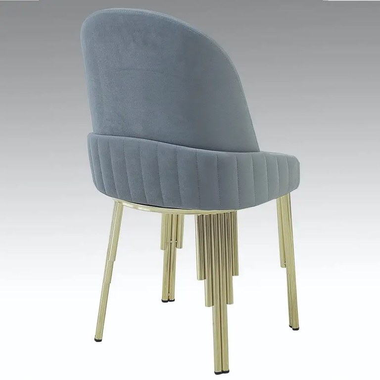 Scaun ,tapitat culoare blue si piciore metal culoare auriuScaun tapitat;Dimentiune;latime - 60 cm, lungime - 50 cm,inaltime - 92 cm,Sezut - Placaj presat Max rezistent la greutate - 140 kgBurete - 22 DNS (gri)Stofa - BABYFACE material (poate fi sters)Picior - Metal PLACĂ NICHEL AUR (acoperire)Grosimea profilului - 1 mmProdus grautate - 5,5 kgPachet - dezasamblat Ideal pentru:Horeca,Living,Bucatarie,Office,