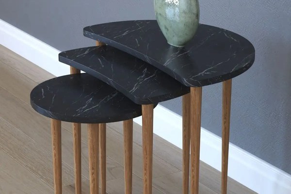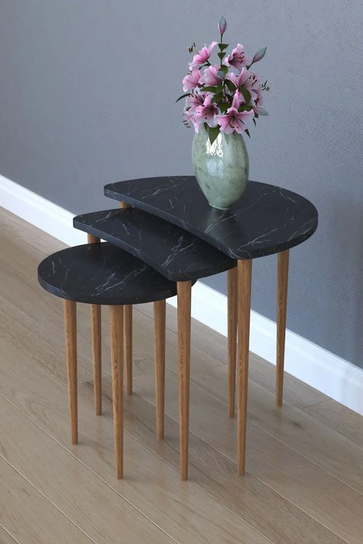 Set 3 masute cafea Moon Homs marmorat negru/nuc