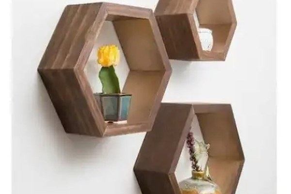 Set 3 rafturi perete Hexa Homs lemn natur- elementele de efect din orice cameraCu acest set 3 rafturi perete Hexa Homs lemn natur este mai usor sa-ti etalezi piesele decorative in camera dorita. Rafturile suspendate sunt realizate din lemn culoare maro-natur si creeaza un plus de frumusete oriunde ar fi amplasate. Etajerele din lemn natur in culoarea nucului, au design deosebit, adecvate atat unui design modern, cat si unui design neoclasic sau shabby chic, ori vintage.Le poti aseza unul langa altul in ordinea imaginatiei sau le poti folosi separat. Pentru un cadru complet, le poti asocia cu un mobilier living, dormitor sau pentru hol.Dimensiuni:Dimensiune raft mare: 37x43x9 cmDimensiune raft mediu: 31x35x9 cmDimensiune raft mic: 26x30 x9 cm Rafturi de perete, micile accesorii care fac diferentaSetul de 3 rafturi Hexa iti va fi de ajutor in realizarea unei amenajari de succes. Indiferent ca iti doresti etajere pentru depozitare ordonata sau vrei doar sa umpli un perete gol. Pe categoria de rafturi de perete, vei gasi o mare selectie de modele din pal, lemn cu ornamente sau simple. In functie de stilul camerei si culoarea peretilor, poti alege si etajerele. Acestea te ajuta sa economisesti spatiu la sol, fara sa incarce decorul.Din pal, lemn sau metal, vei gasi cu siguranta raftul potrivit. Un set adecvat iti poate pune in valoare o comoda televizor, o canapea sau un colt uitat din camera.Setul de 3 etajere Hexa Homs iti poate rezolva problema aranjarii obiectelor decorative.Produsul se livreaza neasamblat, fiind insotit de schita si accesorii pentru montaj, iar montajul se face de catre beneficiar. Curatarea se face cu o carpa alba moale si produse de curatenie neabrazive.