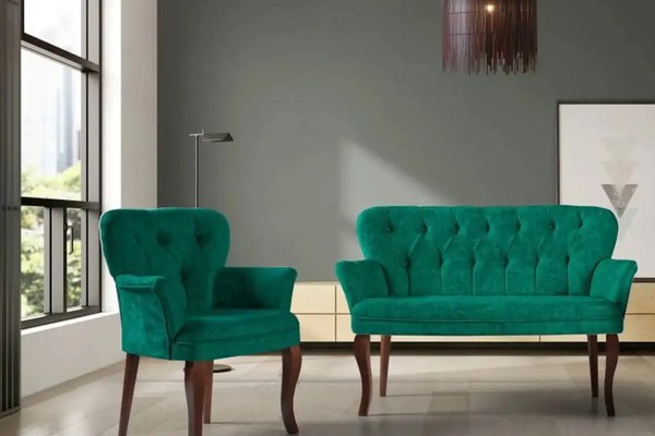 Set canapea 2 locuri cu 1 fotoliu, Cafe ,verde