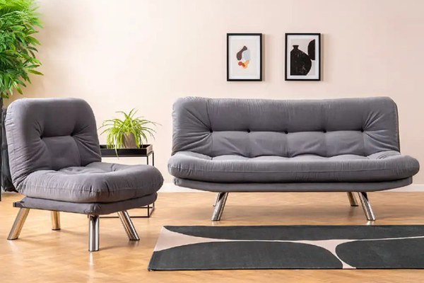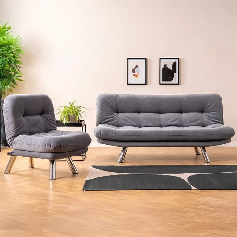 Set canapea extensibila 3 locuri si 1 fotoliu extensibila ,living, 180x110 cm – stofa, gri – Merburn