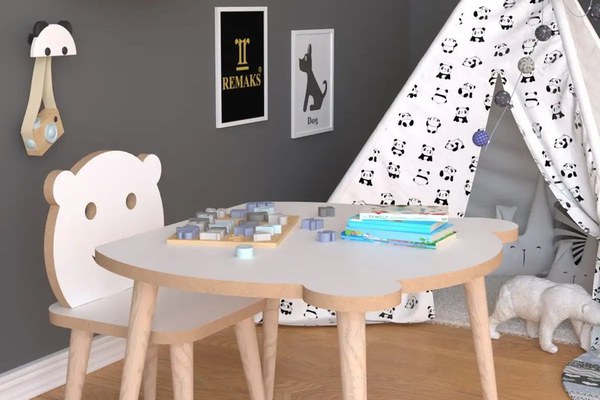 Acest set Panda alb este realizat din PAL rezistent si include o masa si un scaun potrivite pentru copii. Designul simplu si culoarea neutra il fac usor de integrat in orice spatiu. Ideal pentru invatat, desen sau luat gustari.Set activitati pentru copii format din masa cu un scaun cu o forma de urs. Setul este o combinatie de alb cu natur astfel incat este potrivit si pentru o fetita si pentru un baietel.Este un set tip economic produs din PAL, care este inofensiv pentru mediu și sanatate, nu contine substante cancerigene, in standardele europene de calitate E1. Este produs cu materiale adecvate mediului și sănătății copiilor.Realizat din pal de 18 mm. Se livreaza neasamblat ,insotit de schita si accesorii montaj.Curatarea se face cu o carpa alba moale si solutii de curatare neabrazive. Dimensiuni:Masa: L 50, l 46, h 42 cmScaun: L 30, l 30, h 52 cm