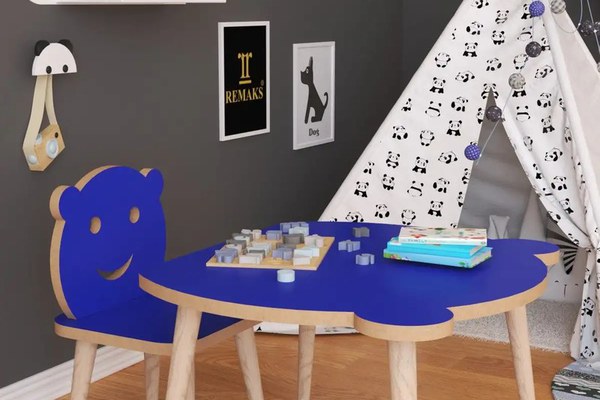Set masa + 1 scaun copii – PAL albastru, Panda