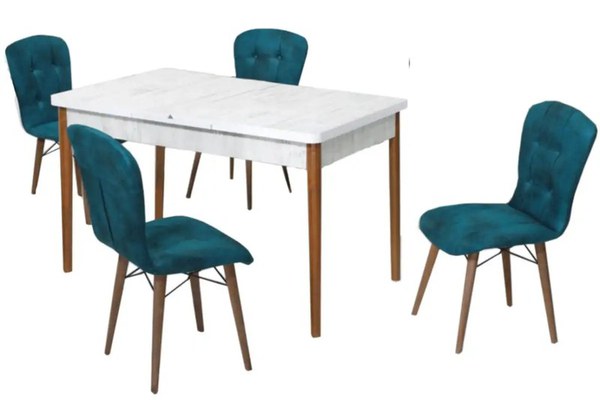 Set masa alba extensibila cu 4 scaune tapitate cobalt blue Homs picioare lemn 110 x 70 cm