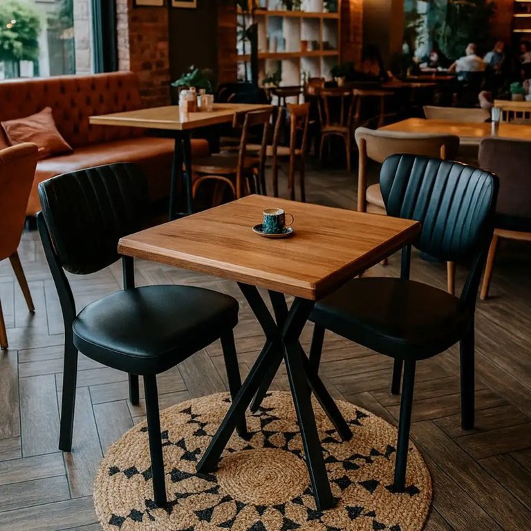 Caracteristici principale:Set complet: 1 masă + 2 scauneMateriale de calitate: blat din MDF gros de 36 mm cu finisaj nuc, picioare și structură metalicăDimensiuni ideale pentru familie: 80 x 80 x 74 cmScaune comode: structură metalică solidă, tapițerie piele ecologige negruStil modern-industrial: potrivit pentru bucătării, livinguri și open space-uriSpecificații tehnice:Masă:Material blat: MDF 36 mm (18+18 mm)Dimensiuni: 80 x 80 x 74 cmCuloare blat:nucPicioare: Metal: 40x40 mmScaune (2 bucăți):Cadru: Profil metalicTapițerie: Piele ecologige negru