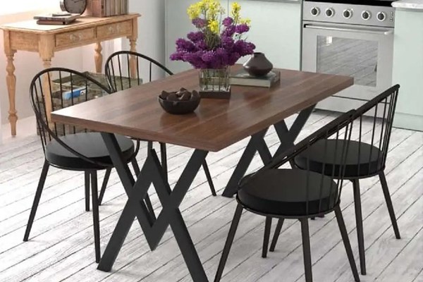 Set Masa cu 4 Scaune Bucatarie, Nuc- un ansamblu unic pentru camera de zi sau bucatarieSet Masa cu 4 Scaune Bucatarie, Nuc se potriveste la fix in orice sufragerie sau bucatarie in stil contemporan. Modelul mizeaza pe minimalismul liniilor, cu un design atragator si usor de folosit, sustinut de un cadru rezistent cu format geoemtric. Picioarele in V sunt vopsite in negru si ofera un dinamism cromatic bland cu blatul de nuc al mesei. Blatul este bine finisat, lucru care ii ofera un plus cand muti masa dar si la curatare.Cu acest decor de efect, poti sa ai un ambient placut, in care sa te aduni cu prietenii si familia. Cele 4 scaune ultra comode se potrivesc in casele moderne, in sufragerii sau open-spaceuri, dar si pe terase acoperite, in sezonul cald.Daca ai mai multi oaspeti, alege din galeria scaune bucatarie, in nuante variate, care sa-ti evidentieze stilul decorativ.Mese si scaune- elemente cheie in orice bucatarieCu o masa de dimensiuni medii, ai suficient loc si pentru o cina romantica, si pentru clipe de ragaz cu cei dragi, dar si de o aniversare. Masa are un blat cu patina lucioasa, lucru ce ii confera rezistenta sporita in timp. Blatul se curata usor, fara sa se zgarie si se pastreaza perfect si in mediile cu umezeala si aburi, cum e bucataria.Dimensiuni: MASA : L 120, l 80, h 75 cm;SCAUNE : L 55, h 75 cm.(SEZUT H:40) In categoria de mese de bucatarie ai cele mai atragatoare modele, care sa se plieze pe stilul decorativ ales de tine. Poti sa asortezi cu un set canapele si fotolii, daca amplasezi in living, si cu un dulap de bucatarie si rafturi suspendate, daca amenajezi bucataria. Masa se livreaza neasamblata, fiind insotita de schita si accesorii pentru montaj. Montajul se realizeaza de catre beneficiar.Blatul nu este pregaurit.Scheletul metalic se infileteaza impreuna cu blatul cu o surubelnita manuala sau electrica. Curatarea se face cu o carpa moale alba si produse de curatenie neabrazive specifice tipului de material.
