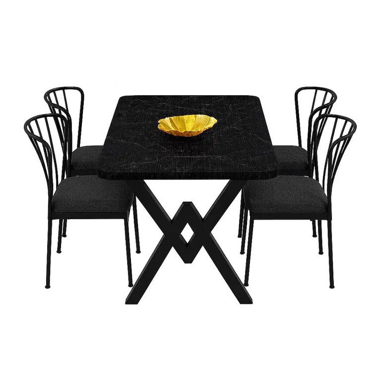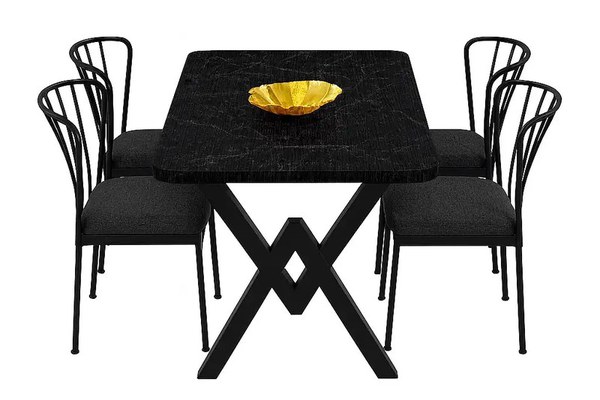 Set masa cu 4 scaune metal, Amsterdam Homs,negru marmurat/negru 70 x 110 cm