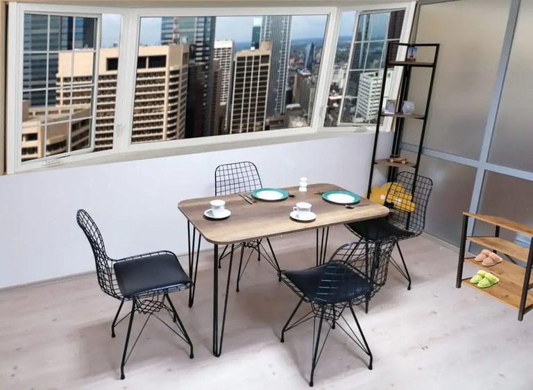 Set Dream pentru o familie de 4 persoane format din masa si 4 scaune. Setul are un design modern, deosebit, fiind pretabil atat pentru o bucatarie inchisa, cat si pentru o bucatarie open-space sau chiar se poate aseza in dining . Scunele sunt solide, confectionate din metal de culoare neagra si avand sezutul tapitat cu piele ecologica. Masa are scaunele din metal negru si blat din pal 18 mm de culoarea nuc. O combinatie cu care nu vei da gres in amenajare, fiind niste piese in trend. Produsele se livreaza neasamblate, fiind insotite de schita si accesorii pentru montaj. Montajul se realizeaza de catre beneficiar. Curatarea se face cu o carpa moale alba si produse de curatenie neabrazive specifice tipului de material. Dimensiuni Dimensiune masa L 110, l 70, h 71 cm Dimensiuni scaun L 45, l 42, h 80 cmmasa si scaune bucatarie