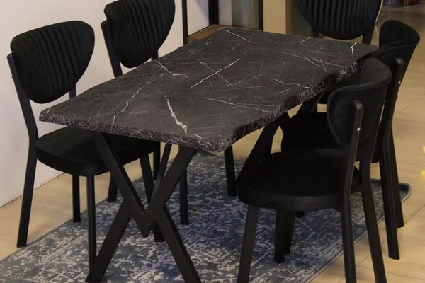 Set Masa Barton din MDF cu 4 Scaune din metal, Caracteristici principale:Set complet: 1 masă + 4 scauneMateriale de calitate: blat din MDF gros de 36 mm cu finisaj negru, picioare și structură metalicăDimensiuni ideale pentru familie: 140 x 80 x 72 cmScaune comode: structură metalică solidă, tapițerie textilă negruStil modern-industrial: potrivit pentru bucătării, livinguri și open space-uriSpecificații tehnice:Masă:Material blat: MDF 36 mm (18+18 mm)Dimensiuni: 140 x 80 x 72 cmCuloare blat:negruPicioare: MetalScaune (4 bucăți):Cadru: profil metalicTapițerie: textil negru