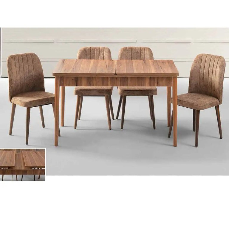 Set masa extensibila cu 4 scaune tapitate Homs cargold 250-30049 nuc-maro 170 x 80 cm