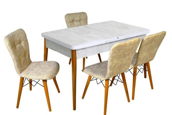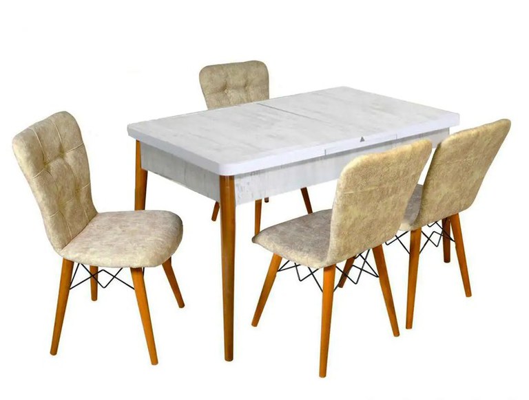 Set masa extensibila cu 4 scaune tapitate Homs cristal alb-bej 110 x 70 cm