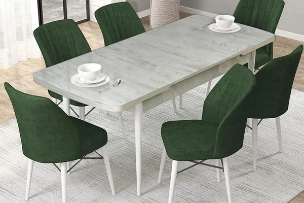 Set masa extensibila cu 6 scaune tapitate Homs cargold 250-30050 ALB-VERDE,170 x 80 cm