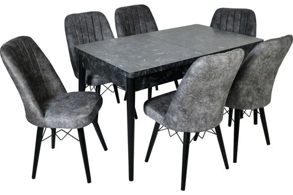 Set masa extensibila cu 6 scaune tapitate Homs cargold 250-30051 negru- gri 170 x 80 cm